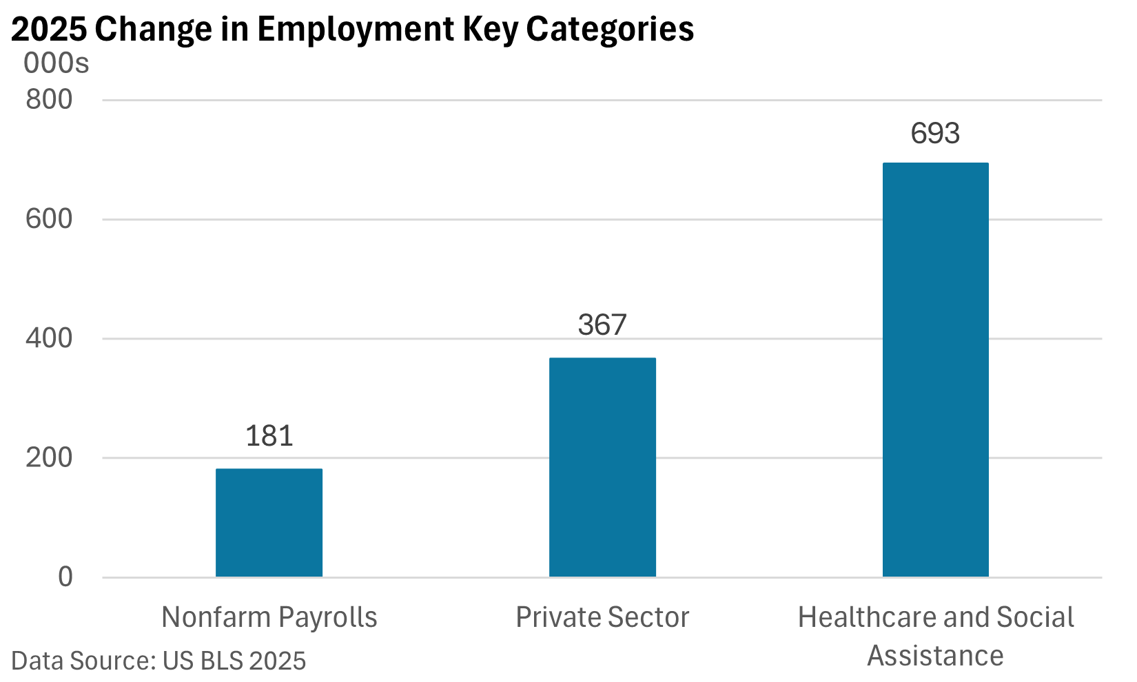 Notably, the engine of job growth is the healthcare sector, which added 693,000 jobs last year. Outside of healthcare, private sector employment declined.